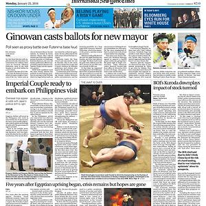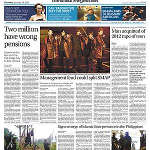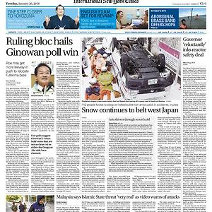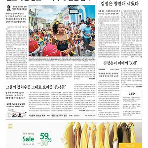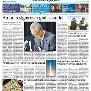 신문1면511 [조간신문1면 모아보기] 2016년 2월 5일 금 - 북한의 미사일 발사 예고와 대응 신문 1면 헤드라인입니다. 2016년 2월 5일 금요일 신문 1면들과 헤드라인을 살펴봅시다. 북한의 미사일 발사 통보와 그에 따른 대응이 사진과 기사로 실렸습니다. 중앙일보와 코리아타임스는 북 로켓 요격 PAC-3 실은 자위대함 사진이 1면에 발표되었습니다.일본 해상자위대 소속 수송함 ‘오스미’가 2월 4일 북한의 장거리 로켓(미사일) 발사에 대비해 지대공 요격미사일 패트리엇(PAC-3)을 싣고 히로시마의 구레 해상자위대 기지에서 오키나와로 향하고 있는 모습입니다. 신문1면 지면 보기Friday, February 05 2016South Korea Newspapers 2016년 2월 5일 금요일 [조선일보] 1면 기사 [중앙일보] [동아일보] [매일경제] [코리아타임스] 1면기사 신문1면/한국 신문1면 2016. 2. 6. [조간신문1면 모아보기] 2016년 2월 4일 목 - 북한 장거리미사일 발사 예고, 자동차 개별소비세 인하 오늘의 신문 1면 헤드라인입니다. 2016년 2월 4일 목요일 오늘의 신문 1면들과 헤드라인을 살펴봅시다. 오늘자 신문1면 지면 보기Thursday, February 04, 2016South Korea Newspapers 2016년 2월 4일 목요일 [조선일보] 1면 기사 [중앙일보] [동아일보] [매일경제] [아주경제] 1면기사 신문1면/한국 신문1면 2016. 2. 5. [조간신문1면 모아보기] 2016년 1월 30일 토 - 패터슨 이태원 살인사건 판결, 사드배치논의, 이완구, 원샷법 오늘의 신문 1면 헤드라인입니다. 2016년 1월 30일 토요일 오늘의 신문 1면들과 헤드라인을 살펴봅시다. 오늘자 신문1면 지면 보기Saturday, January 30, 2016South Korea Newspapers 2016년 1월 30일 조선일보 1면기사 증앙일보 한겨레 경향신문 2016년 1월 30일 한국일보 인터내셔널 뉴욕타임스 코리아헤럴드 코리아타임스 신문1면/한국 신문1면 2016. 1. 30. 일본신문 1면- 2016년 1월 29일 금요일 - 아마리 아키라 경제재생담당상 사임 일본신문 1면 모아보기2016년 1월 29일 금요일에 발행된 일본신문, , 와 미국의 입니다. 아마리 아키라(甘利明) 경제재생담당상이 결국 뇌물수수 혐의를 인정하고 사임하였습니다.1월 28일 아마리씨는 도쿄 내각부청사에서 연 기자회견을 통해 "한 건설회사로부터 총 100만엔을 받았다"며 "(뇌물을 수수하고 개인적으로 유용한) 비서에 대한 감독 책임을 무겁게 받아들이고 있다"고 인정하였습니다. 아베 신조(安倍晉三) 일본 총리는 아마리 아키라(甘利明) 경제재생담당상의 후임으로 이시하라 노부테루(石原伸晃) 전 환경상을 임명하기로 하였습니다. 신문1면 지면 보기Friday, January 29, 2016Japan Newspapers and The Wall Street Journal Asia 朝日新聞 [Asahi.. 신문1면/중국 일본 신문1면 2016. 1. 30. 중국·일본신문1면- 2016년 1월 27일 수요일 - U-23 준결승 중국· 일본신문 1면 모아보기2016년 1월 27일 수요일에 발행된 중국신문, 와일본신문, , 입니다. 아사히와 니시니혼 신문은 일본 U-23 대표팀이 이라크를 꺾고 결승에 오른 것을 전했군요. 결승전 상대는 한국입니다. 신문1면 지면 보기Wednesday, January 27, 2016Japan & China Newspapers [人民日报, People's Daily, Rénmín Rìbào] 인민일보1면Wednesday, January 27, 20162016年 1月 27日, 星期三 [China Daily, 中國日報] 朝日新聞 [Asahi Shimbun] 1면 기사2016年 1月 27日 水曜日 西日本新聞 [Nishi-Nippon] [The Japan Times] 신문1면/중국 일본 신문1면 2016. 1. 28. [조간신문1면 모아보기] 2016년 1월 27일 수 - 2015년 한국 경제성장률 2.6% 오늘의 신문 1면 헤드라인입니다. 2016년 1월 27일 수요일 오늘의 신문 1면들과 헤드라인을 살펴봅시다. 2015년 한국 경제성장률이 2.6%라는 기사가 눈에 띄는군요. 오늘자 신문1면 지면 보기Wednesday, January 27, 2016South Korea Newspapers 2016년 1월 27일 조선일보 1면기사 중앙일보 동아일보 2016년 1월 27일 한겨레 1면기사 경향신문 한국일보 서울신문 국민일보 인터내셔널 뉴욕타임스 2016년 1월 27일 코리아헤럴드 1면기사 코리아타임스 대전일보 중도일보 충청투데이 2016년 1월 27일 일간스포츠 1면기사 전자신문 농민신문 국방일보 신문1면/한국 신문1면 2016. 1. 27. 일본·중국신문1면 2016년 1월 26일 화요일 - 한파, 폭설 일본· 중국신문 1면 모아보기2016년 1월 26일 화요일에 발행된 중국신문, 와일본신문, , 입니다. 최근 갑자기 추워졌다가 풀어지는 등 날씨가 변덕을 부렸습니다.26일자 화요일 신문 1면 사진들에서도 날씨가 빠지지 않는군요. 신문1면 지면 보기Tuesday, January 26, 2016Japan & China Newspapers [人民日报, People's Daily, Rénmín Rìbào]Tuesday, January 26, 20162016年 1月 26日, 星期二 [China Daily, 中國日報] 朝日新聞 [Asahi Shimbun] 1면 기사2016年 1月 26日 火曜日 西日本新聞 [Nishi-Nippon] [The Japan Times] 신문1면/중국 일본 신문1면 2016. 1. 27. 중국·일본신문1면- 2016년 1월 25일 월요일 - 10년만에 일본토종선수가 스모 우승 중국· 일본신문 1면 모아보기2016년 1월 25일 월요일에 발행된 중국신문, 와일본신문, , 입니다. 1면 사진들을 보니 왠 스모선수가 있군요.그의 이름은 고토쇼기쿠 가즈히로(琴奬菊和弘)입니다. 후쿠오카(福岡) 출신 오제키(大關·천하장사인 요코즈나 바로 아래 등급) 고토쇼기쿠 가즈히로(琴奬菊和弘·31)가 1월 24일 마쿠노우치(幕內·1부리그)에서 우승을 확정 짓자 일본 언론은 이를 대서특필하였습니